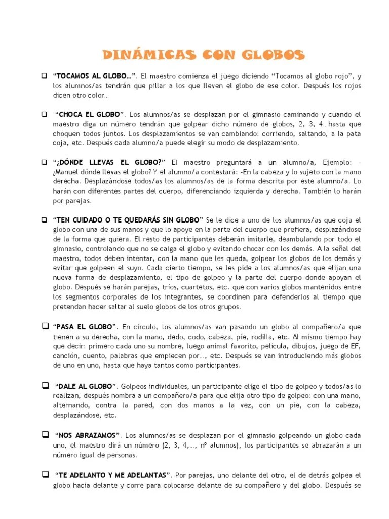 Si se cae, regresa y vuelve a empezar el recorrido dinamicas con globos. • después, en función de la edad, los niños podrán hacer un dibujo o.